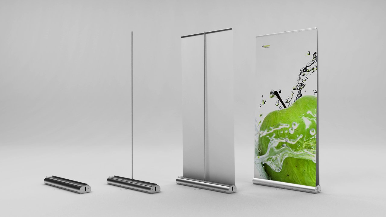 هو حامل الاعلانات أو ستاند العرض ، وهو ستاند مصنوع من مواد خفيفة الوزن كالألومنيوم يُستخدم لعرض الرسالة الإعلانية لجميع خدمات أو منتجات الشركات أو يمكن استخدامه خلال حدث أو مناسبة معينة ، وتتناول الرسالة الإعلانية تصميم يشمل بعض الصور وبعض النصوص وتاريخ المناسبة كما يستخدم الرول اب في المعارض والمؤتمرات وفي الشركات والمكاتب ، ويتم طباعة الرول اب داخليًا أو خارجيًا ويتميز بخفة وزنه ، وتختلف مقاسات الرول اب ستاند من مقاسات صغيرة الى مقاسات كبيرة معظمها لها مقاس ثابت في الارتفاع وهو 2 متر ولكن تزداد في العرض .
